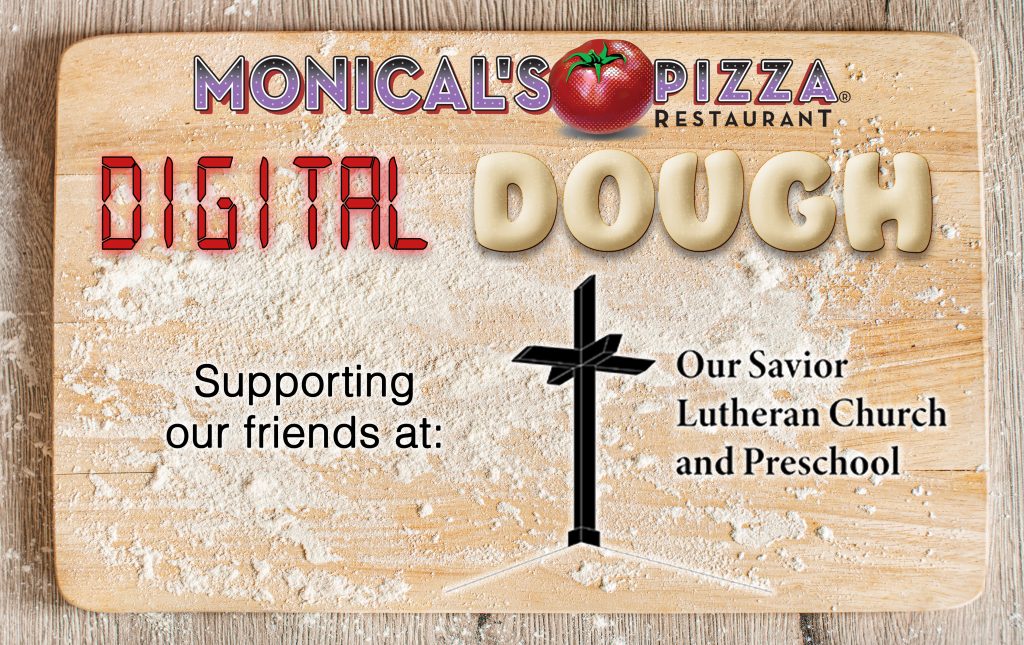 Purchase a Monical’s Pizza/Our Savior Lutheran Preschool eGift Card in any whole dollar amount from Monday April 6, 2026 – Monday April 13, 2026, and we will donate 10% of your purchase back to Our Savior Lutheran Preschool! Monical’s Pizza eGift Cards never expire and can be used at every Monical’s Pizza Restaurant!